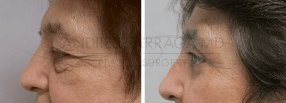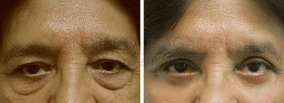 Patient who came for rejuvenation had less than 1 year ago had upper lid surgery but wanted to look younger. She is shown 4 months after revision of her upper lids and lower lid blepharoplasty with lid tightening and fat trasnsposition