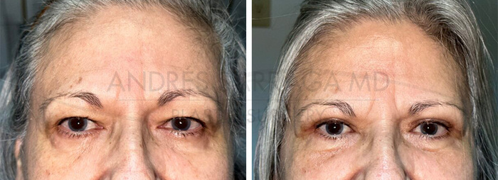 Performed with only one incision done through the upper eyelid, leaving almost imperceptible signs of surgery. Eyelids are lifted, and brows are relaxed and elevated. On top of completely rejuvenating your look, the benefit of this surgery is that it opens up your visual field and improves your outlook every day.