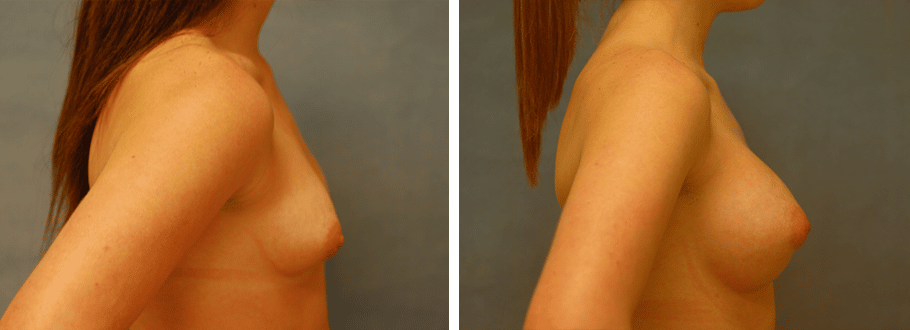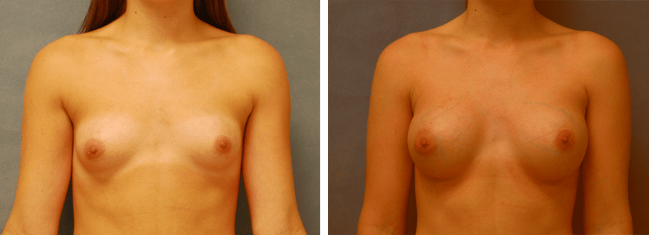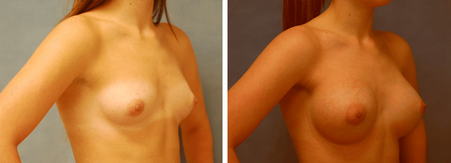 21 y/o female who desired a fuller look to her breasts periareolar incision subpectoral 300ml gel implants.