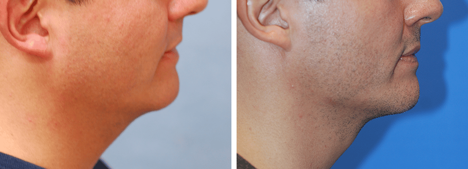 Male 40’s with complaints of poor neck definition and fullness shown 3 months after injection of Kybella and tightening with Ultherapy.