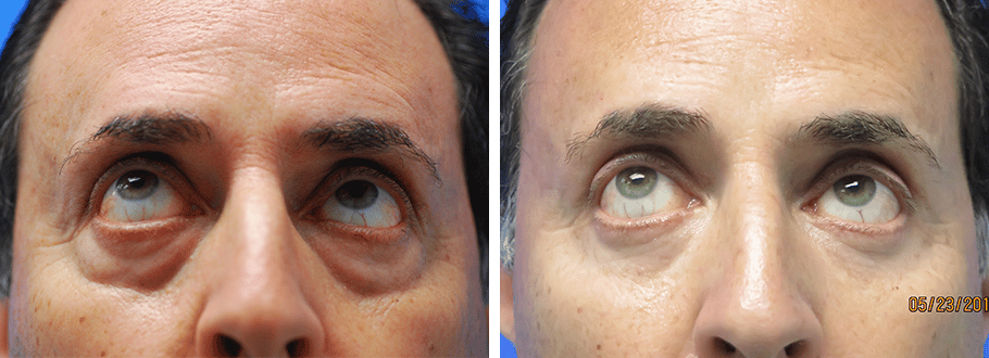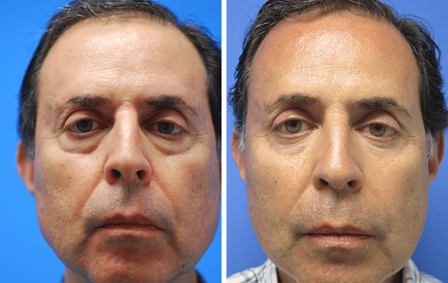 Male in his 50’s who disliked the heaviness (bags) under his eyes and wanted to rejuvenate his look. He is shown 6 months with a rejuvenated look after a lower and upper blepharoplasty surgery with a nice correction of the bags under the eyes as well as the hollowing.