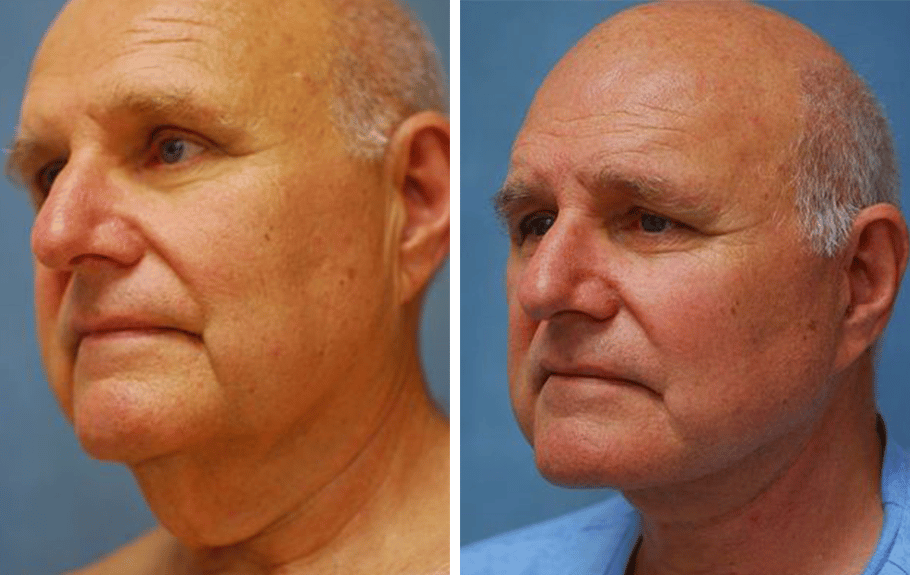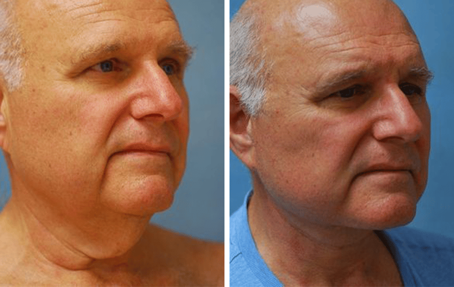 66 y/o male who disliked the heaviness of his neck with the folds and excess skin after having a profound amount of weight loss. He is shown a year after a neck lift. Now he feels like his neck matches the rest of his body.