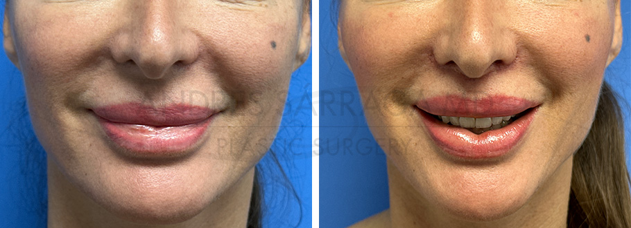 Young female who desired to improve the aesthetics around on her lower face and lip area, she underwent a lip lift. At just only 3 weeks you can notice how the aesthetics are better balanced and she has a more sultry look.