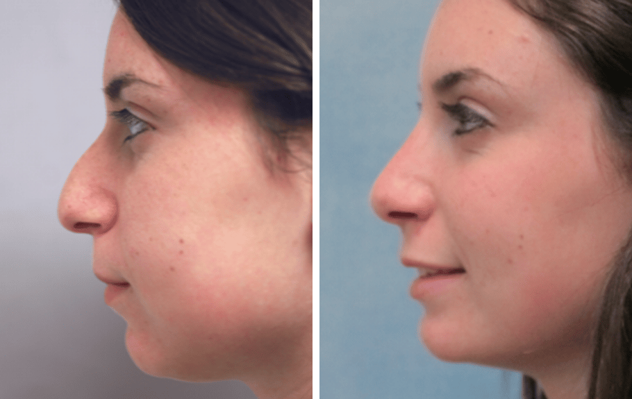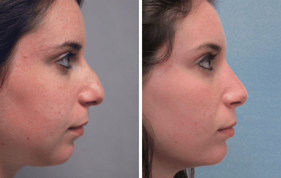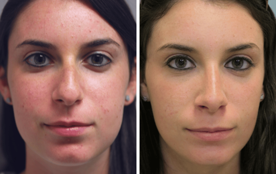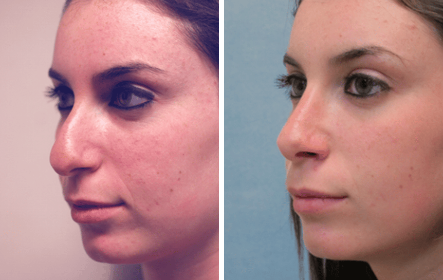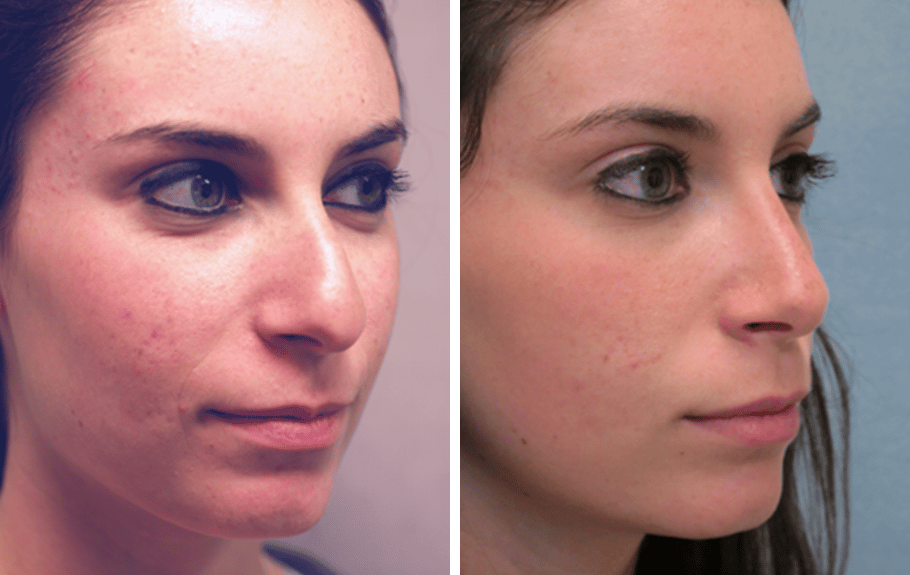 17 year old female complains of nasal deformity . Patient doesn’t like bump on profile view, and feels nose is too wide, or “boxy” at the tip area. Two months after surgery, patient is very happy with her profile and her appearance from the front. Patient underwent nasal and septal surgery, with nostril , “alar wedge”, reshaping.