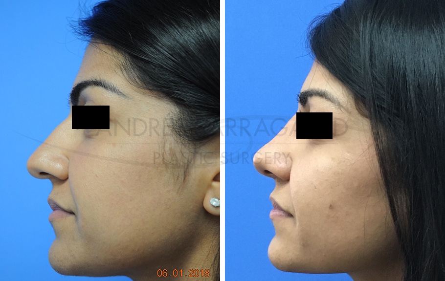 Young female who desired to improve the appearance of her nose, yet wanted to keep her ethnic features; shown over 3 months post op closed rhinoplasty (no external incisions).