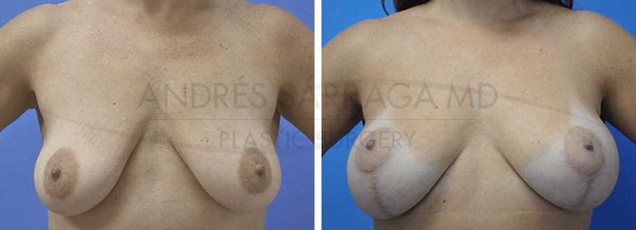 Dr. Sárraga and Dr. Tran are able to perform multiple surgeries at the same time for increased breast enhancement if desired. The most common combination procedure is the breast lift, which may be recommended for women with sagging breasts, whether due to age, weight loss, or excess volume. A breast lift surgically lifts and tightens the breasts while removing sagging tissue; when paired with augmentation, can provide a dramatic change in breast appearance.
