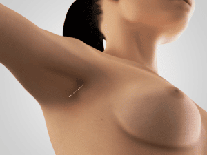 We are proud to offer this minimally invasive and concealed approach using the SIMPLE breast augmentation. Some patients may opt for or be recommended this alternate incision, which leaves no visible scarring on the breasts, rather using the underarm as the opening for breast implant insertion.